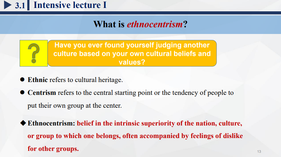 (1)民族中心主义的概念、特征,成因;