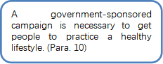 培养学生的批判性思维,正确看待东西方文化中的健康观差异。练习supporting details的写作方法。 |