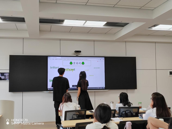 这些沉浸式的实操体验引发了在场师范生的强烈共鸣。外语A2213班缪洁颖同学兴奋地说:“谈老师拆解的游戏化设计路径非常实用,尤其是目标规则和激励系统的设置。这让我们明白,游戏化不是堆砌技术,而是有科学理论支撑的系统设计。我迫不及待想在未来自己的课堂上尝试设计这样的‘闯关’任务了!”讲座尾声,谈笑老师寄语未来教师们:“数智时代的游戏化学习,其核心在于重构‘以学习者为中心’的教育生态。”学校《二语习得》校行合作课程负责人项莉教授强调,此次校行合作课程是今年会jinnianhui官网深化教学改革、对接基础教育前沿需求的重要举措。它不仅为师范生注入了智慧教育的新理念、新技能,更搭建了高校与教研机构协同育人的创新桥梁。学院将持续推进此类合作,拥抱变化,积极探索,与业界专家携手,共同开启智慧语言教育的新篇章。