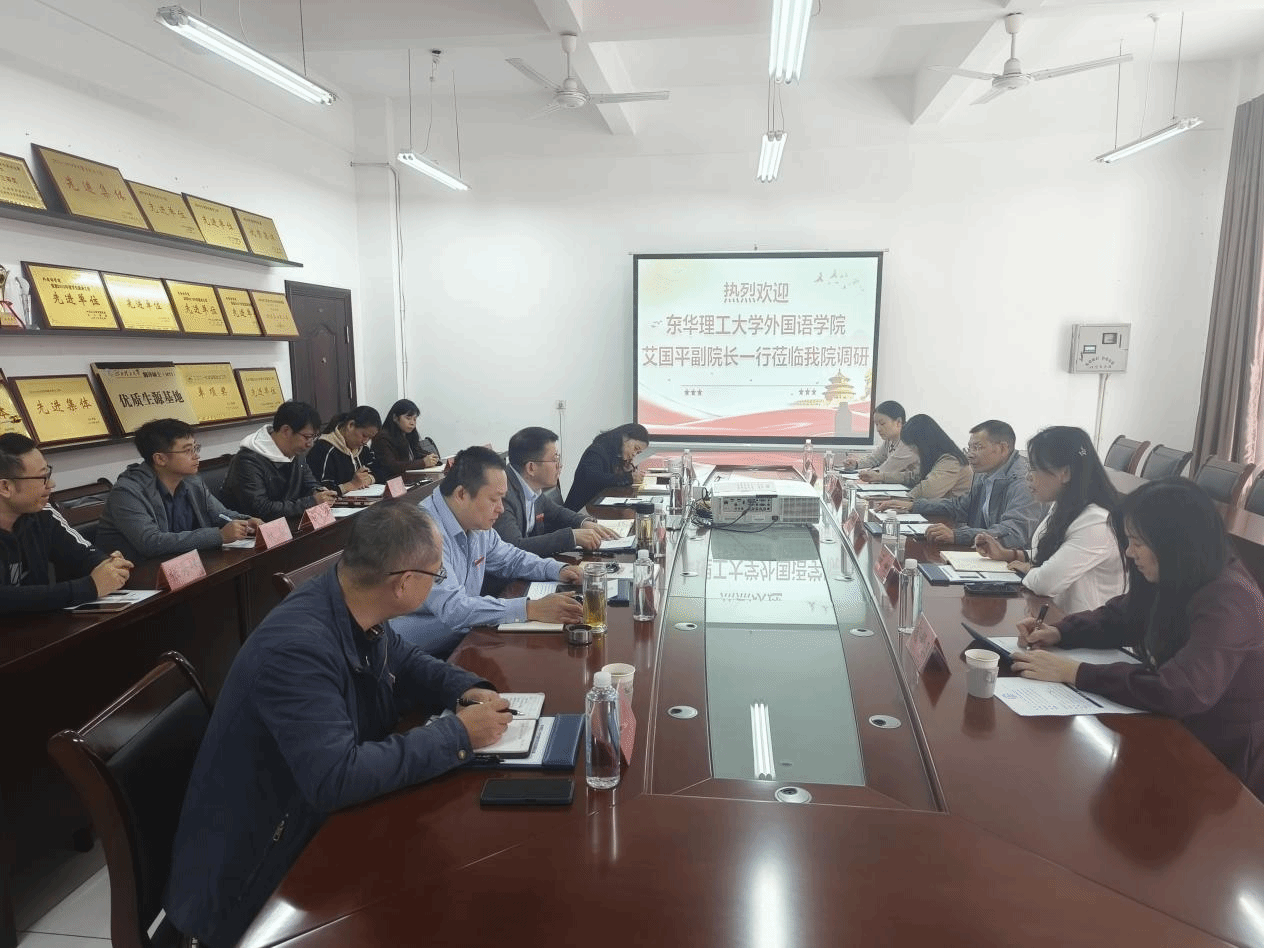 10月25日,东华理工大学今年会jinnianhui官网副院长艾国平一行5人来今年会官网调研,双方就英语师范教育人才培养、师范专业认证及第二课堂活动等相关议题进行了深入交流与探讨。今年会官网党政班子,科室负责人及英语教研室负责人参加了会议,会议由院长周志高主持。