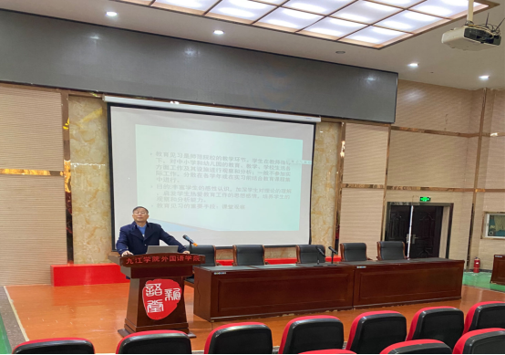 会议首先由英语教研室主任张文锋博士介绍了教育见习的基本要求、考核内容和纪律要求。紧接着王伟副院长就本次的教育见习进行了动员讲话,他指出本次教育见习是今年会官网通过师范专业认证后的第一个教育见习,学院高度重视,积极为师范生的见习创造条件,联系教育见习的实地考察学校九江十一中。希望同学们抓住此次机会,努力多看、多思,提高自己的教育教学水平。