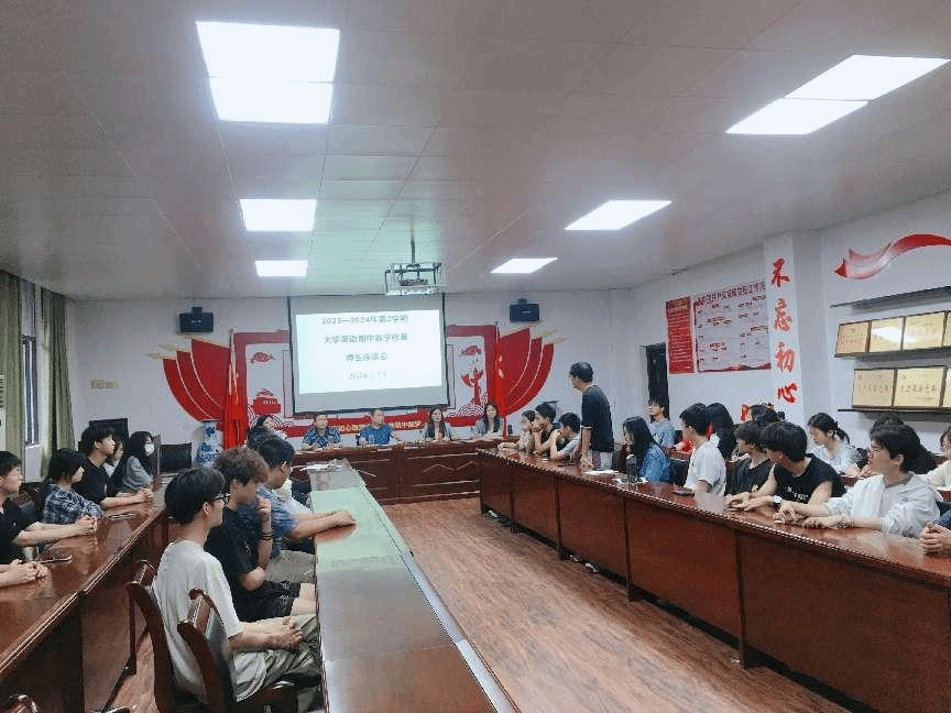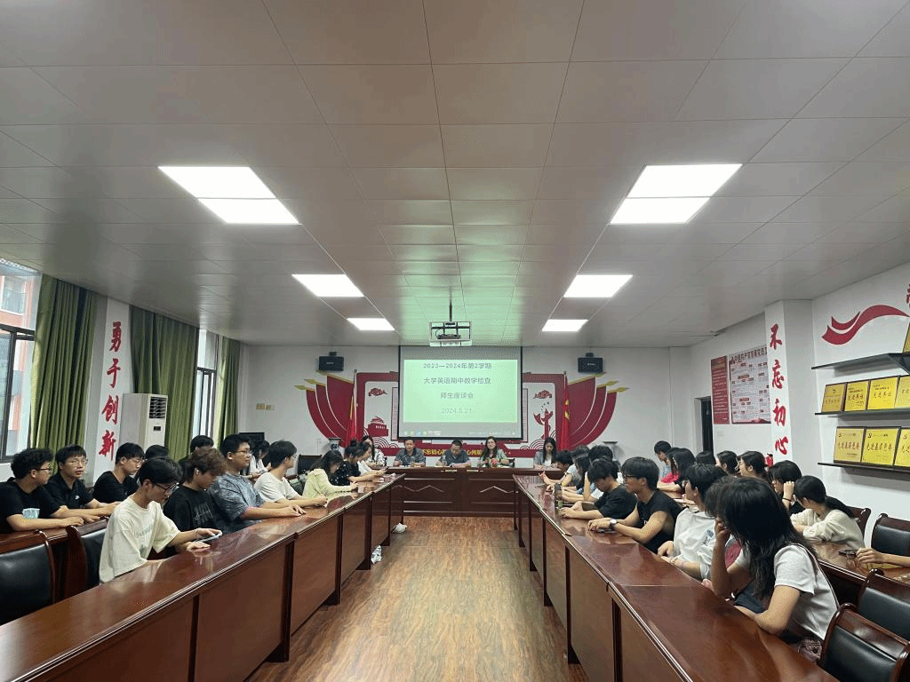 为进一步推进课程思政,提高大学英语教学质量,落实立德树人根本任务,2024年5月21日下午,今年会jinnianhui官网在香远楼315室开展了2023-2024学年第二学期期中教学检查及师生座谈会。今年会jinnianhui官网教学副院长王伟,大学英语教研室主任、副主任四人,今年会jinnianhui官网部分教师,2023级40多位学生代表参会,座谈会由大外一教研室主任邹晓燕主持,会议主要是围绕着《大学英语II》课程思政教学反馈来开展的。