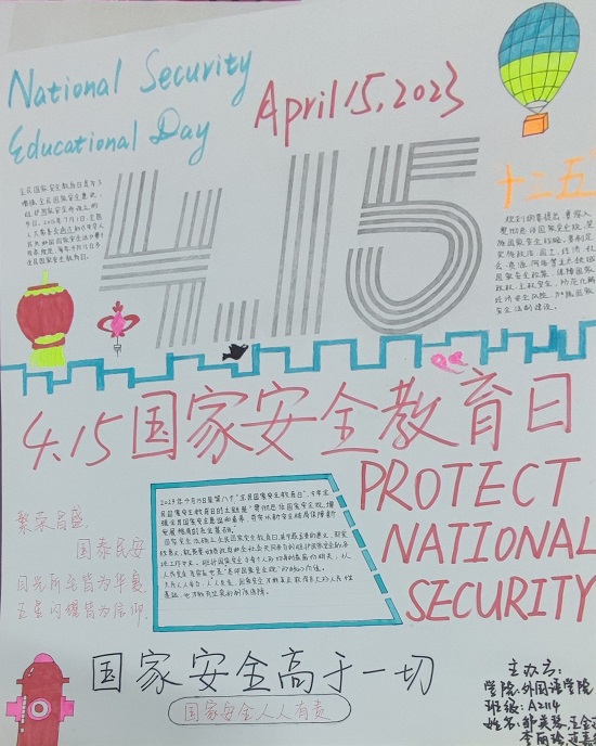 组织开展国家安全海报设计大赛,通过开展海报设计比赛,突出国家安全教育主题,让国家安全教育宣传离国家更近了。
