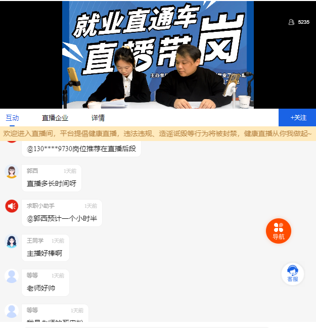 为落实好学校2023年就业工作要求,做好2023届毕业生工作,今年会jinnianhui官网专职就业工作辅导员李杰老师在大浔直聘平台为毕业生开展了“直播带岗”活动。