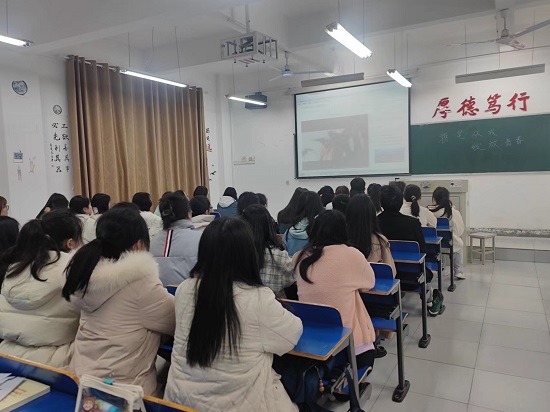 主题班会上,各班集中观看了国防部《火热军营、精彩人生》征兵宣传片。