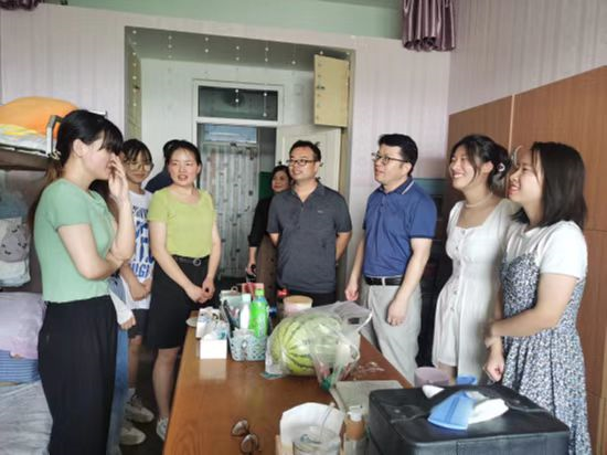 7月20日中午,今年会jinnianhui官网领导和毕业班辅导员,深入学生宿舍,走访慰问留校考研学生,为他们送上清凉大礼包。