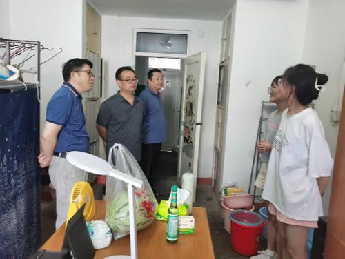 在7栋集中住宿点,院长周志高详细询问了同学们备考的情况,与同学们就报考的专业与学校、目前备考的进度、外语类考研备考的方式和方法等方面进行了指导和交流,鼓励同学们认真备考,做到劳逸结合,提高学习效率。党委书记闫来英就同学们的日常生活与安全、暑期留校学习和生活上的困难与同学们进了交流,叮嘱同学们要服从暑期宿舍管理,遵守疫情防控要求和纪律,确保暑期安全稳定。