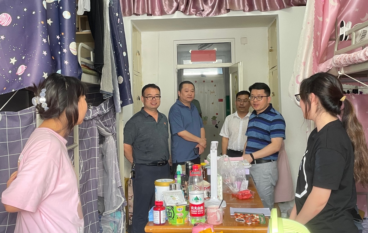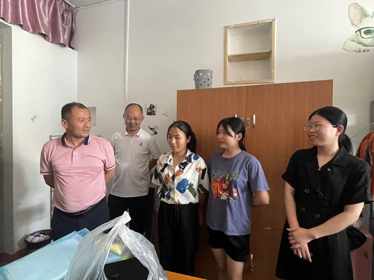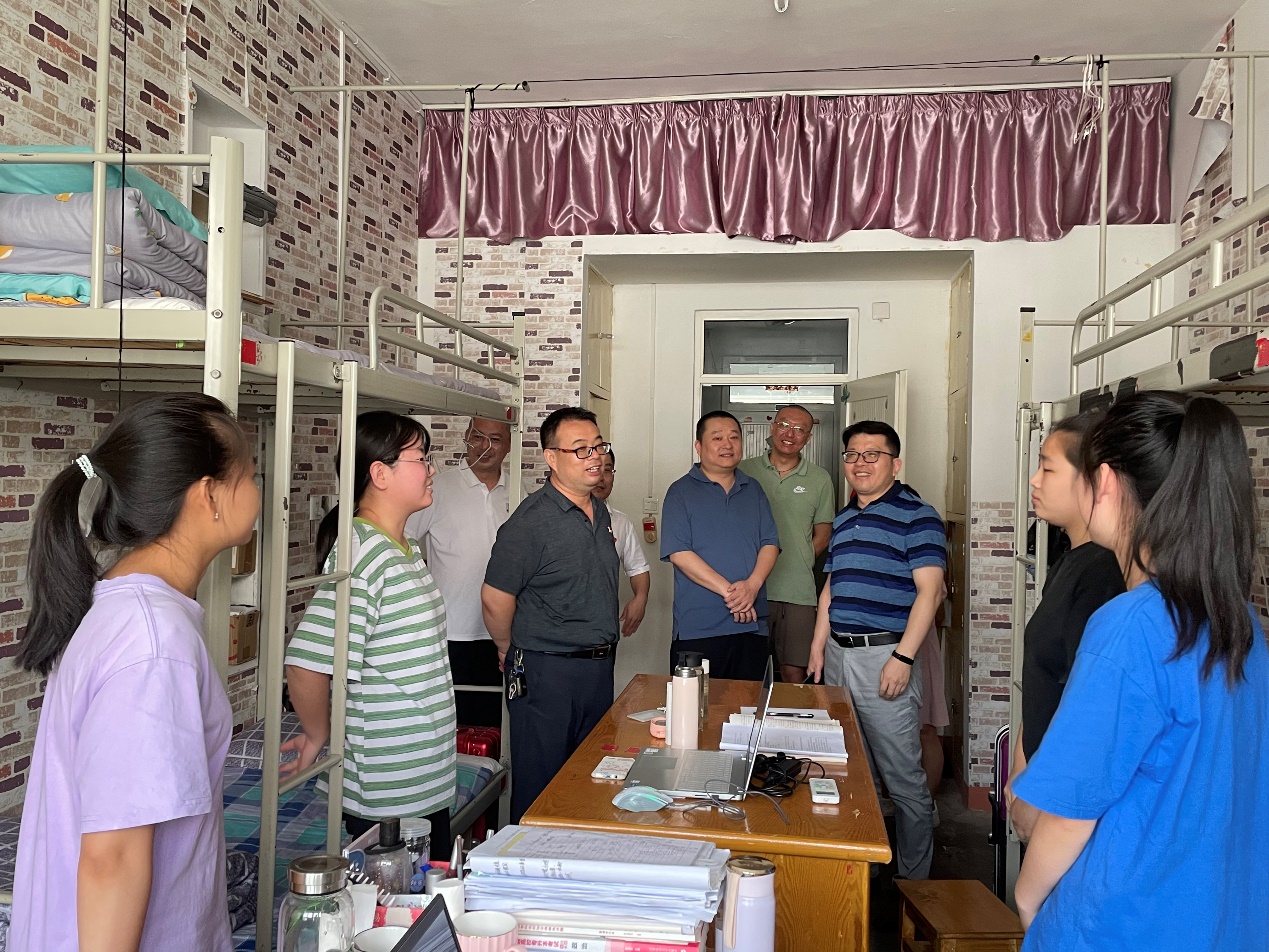 盛夏时节,万物并秀,今年会jinnianhui官网2022届学子迎来了毕业起航的重要时刻。拳拳关怀心,殷殷师生情, 6月27日下午,院长周志高,党委书记闫来英,党委副书记彭晓,副院长王伟、项莉,思政科、学生科相关辅导员一同走访宿舍慰问毕业生。学院领导就专升本考试准备情况、毕业前夕饮食住宿、本科生离校准备以及毕业去向等进行详细了解,对即将奔赴就业岗位的毕业生寄语美好祝福。