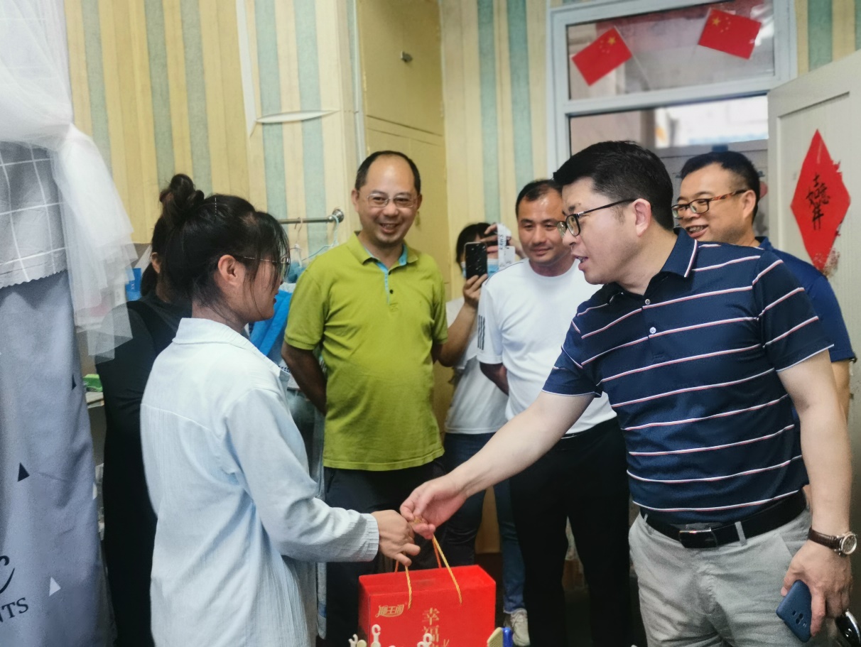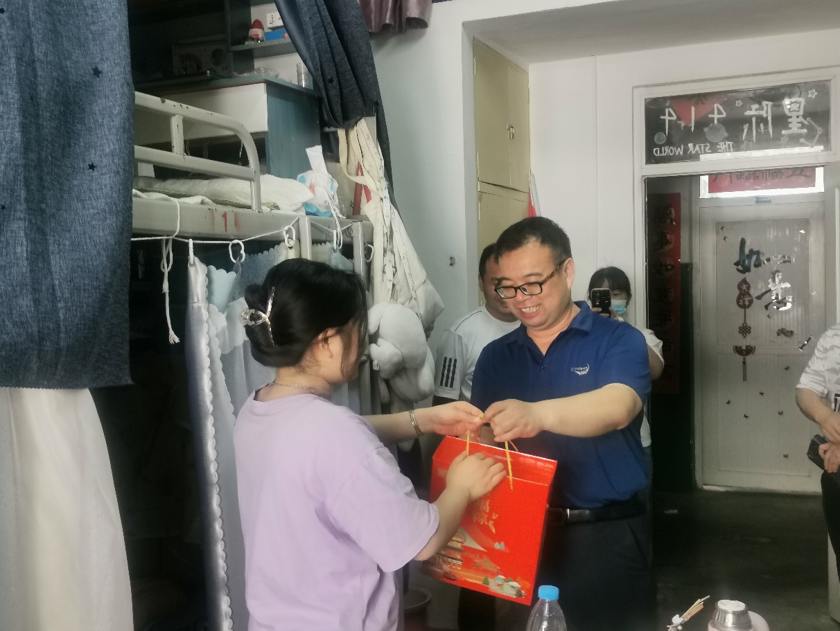 走访中,院领导代表学院为同学们送上暖心的粽子和佳节祝福。粽叶飘香,每一个粽子都饱含了学院对困难学子的浓浓关爱,寄托了学院对外院学子的美好期许,载满了学院对莘莘学子的衷心祝福。