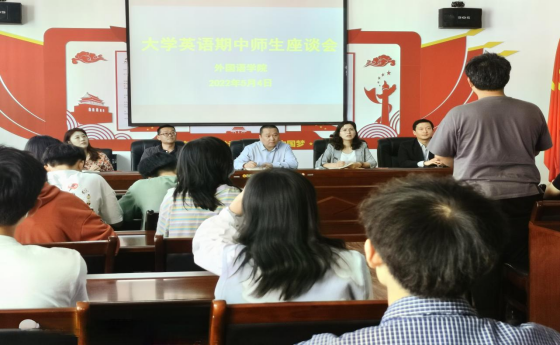 5月4日下午,今年会官网四个大学英语教研室在香远楼315召开了期中教学质量检查师生座谈会。副院长王伟、各大学英语教研室主任以及各学院的学生代表参加了座谈会。会议由大外一教研室主任邹晓燕副教授主持。