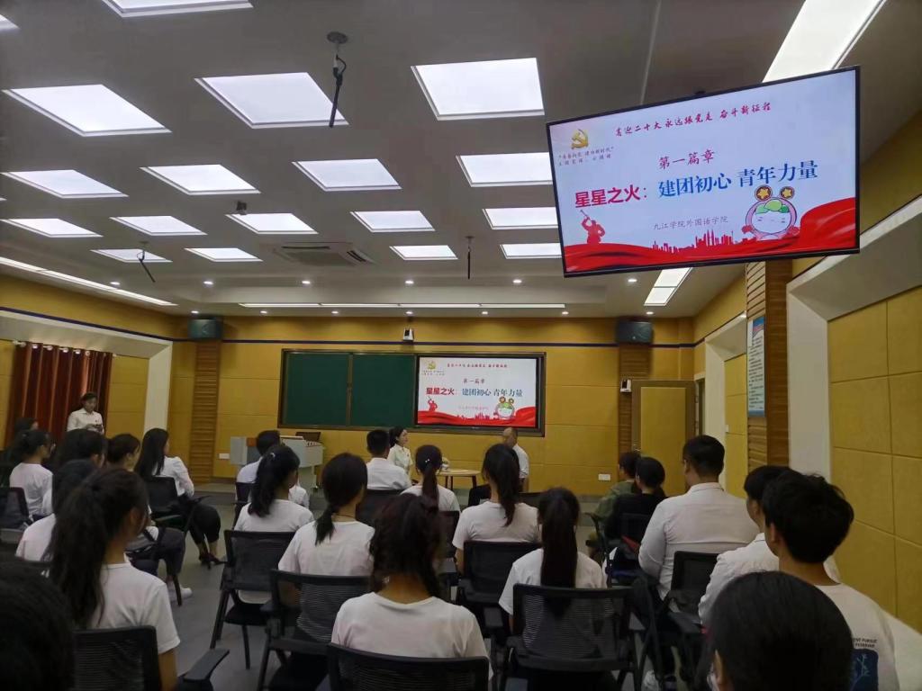 课程主体部分以采访四名身边青年党员典型为彩线,融汇九江红色历史、融合外语教学特点,在时空对话中将理论讲授、党史故事、主题演讲、情景快闪和课后实践串联在一堂课中。内容选取建团之初、《共产党宣言》中译本问世、疫情防控、孔子学院建设、新时代新征程等题材,展现青年初心力量、信仰的力量、青春的力量和一起向未来的复兴力量。课程突出青年特点、九江特色、外语特质,让每个参与者都能从中找到自己的影子,从而激发信仰、获得启发、汲取力量。