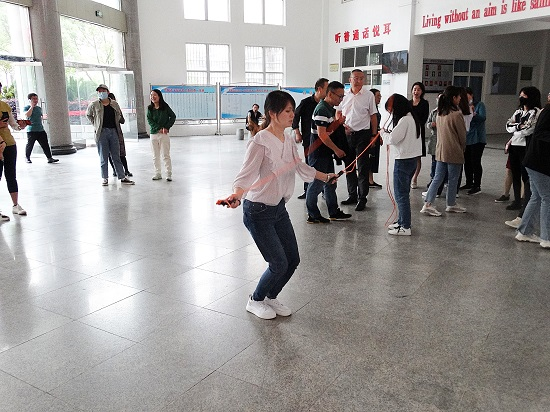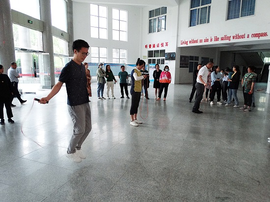 4月27日下午,香远楼大厅“绳”采飞扬,到处弥漫着欢声笑语,今年会jinnianhui官网教职工跳绳比赛正在如火如荼的进行着。