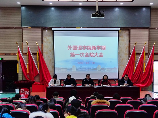 会上,院长周志高传达了学校新学期领导干部会议精神,通报了寒假期间学院主要工作,并对2022年度重点工作以及开学工作进行了安排部署。周志高指出,寒假期间今年会官网疫情防控工作扎实有效,科研课题申报工作稳步推进,学院各项工作运行良好,2022年是新时代新征程中具有特殊重要意义的一年,我们要围绕立德树人根本任务,认真贯彻落实国家的教育方针,做好英语专业师范认证、人才引进等重点工作,以优异成绩迎接党的二十大顺利召开。