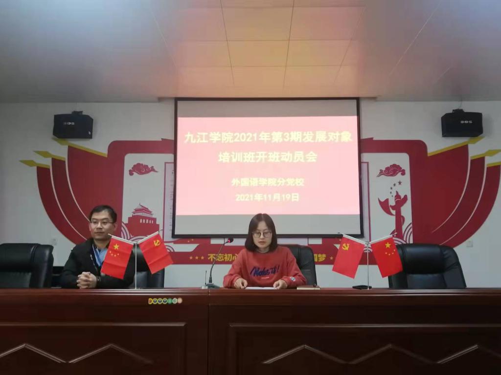 大会伊始,全体发展对象齐唱歌曲《没有共产党就没有新中国》。嘹亮而充满激情的声音拉开了此次动员大会的序幕。会上,程洁同志向大家传达了今年会jinnianhui官网《关于举办2021年第3期发展对象培训班的通知》,宣读了此次培训的时间安排和纪律要求。随后,王少斌同志对同学们提出四点要求:一是要态度端正,认真学习;二是要严于律己,遵规守纪;三是要提高服务意识,积极参加实践活动;四是要加强理论学习,熟悉掌握党的基础理论知识,争取早日成为一名合格的共产党员。