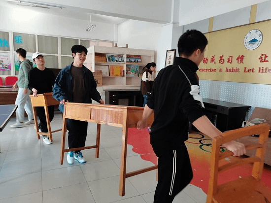 活动中,入党积极分子们被分为四组进行志愿服务活动。各组负责人首先领取任务并进行任务分工,使本组成员明确自己的工作内容。一组同学负责香远楼教工之家和报告厅桌椅的搬动并进行打扫、二组同学负责打扫学生科办公室和会议室、三组同学负责打扫香远楼三楼报告厅和教工之家、四组同学负责清理香远楼地面残留的的施工粉尘和整理三楼报告厅。