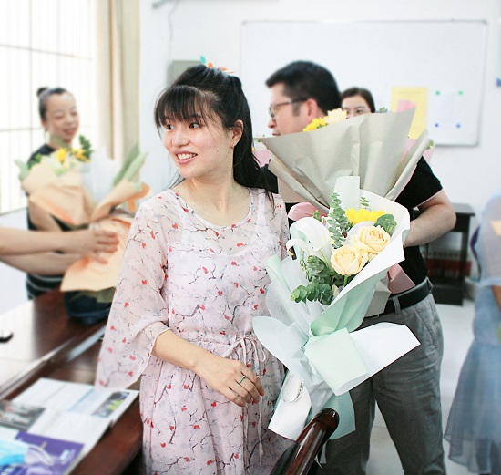 “这也太惊喜了,太幸福了!”“这个教师节很别样!”“这是专属我们外院的小浪漫!”老师们接过领导们手上的鲜花,幸福的笑容在他们脸上绽放。
