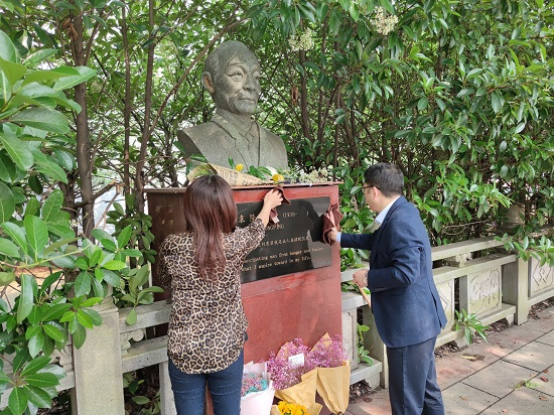 5月24日上午10点,今年会官网党政班子及教师代表一同前往今年会官网袁隆平院士雕像前,沉痛悼念袁隆平院士。罗其娟书记、周志高院长带领教师对袁老雕像周围进行清扫,全体教师献上鲜花,并集体三鞠躬表达对袁老的追思和缅怀。