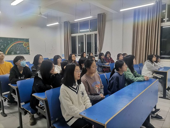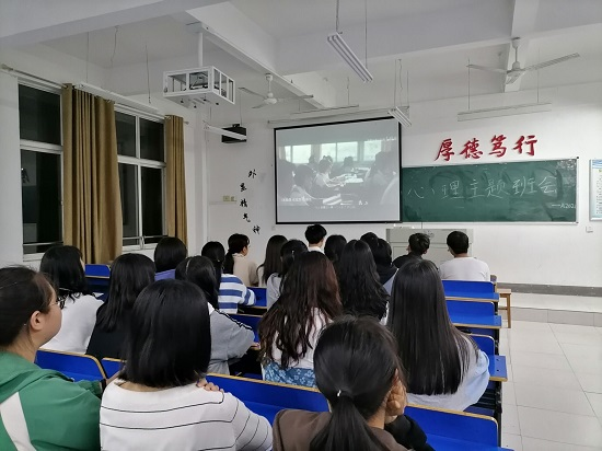 会上各个班级参与的十分活跃,PPT形式主题电影的欣赏,寓教于乐,仅仅通过几个很简短但有趣的心理小故事,就介绍了大学生常见的比如学业压力,情感问题,抑郁症,焦虑症,环境无法适应等心理问题的表现以及解决措施,我们外语学院每个班级都配备了一名心理委员,同学如果心理上出现了状况就可以和心理委员去沟通,同时心理委员也会及时带着同学去校心理办公室咨询求助。