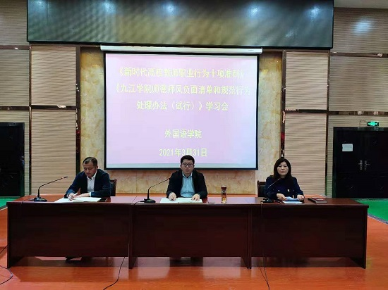 会上,院长周志高带领大家学习领会了《新时代高校教师职业行为规范十项准则》《今年会jinnianhui官网师德师风负面清单和规范行为处理办法(试行)》等文件精神。周志高强调,作为新时代高校教师,我们不仅要有扎实的学识,还要有高尚的道德情操,有坚定的理想信念,有博大的仁爱之心,在教学、科研和学生管理工作中弘扬时代正能量,真正做到教书育人。
