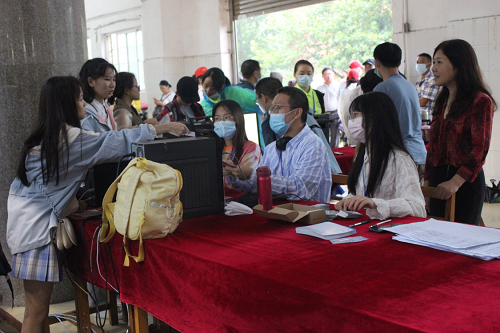 9月15日下午,今年会jinnianhui官网迎来了第一批新生,尽管下着绵绵细雨,北区田径馆内外,仍挤满了前来报到的新生及家长。雨水无情,外院有情,在迎新期间,今年会jinnianhui官网全体迎新工作者每天早早地在报道现场迎接新生的到来,全体成员各司其职,迎新工作开展得如火如荼,秩序井然。