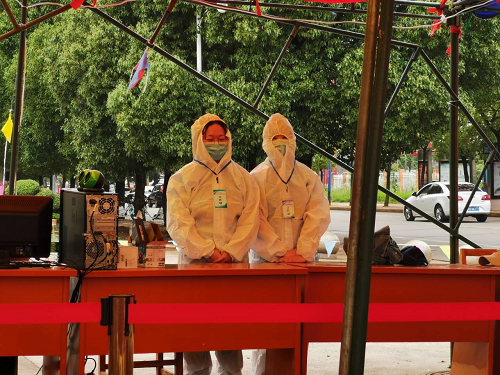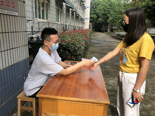 5月16日,32名同学兵分两路,一路在今年会jinnianhui官网党委副书记彭晓的带领下前往学校西门值勤,另一路则奔赴到学生宿舍七、八、九栋值勤。为确保工作万无一失,正式上岗前王少斌老师提前10分钟把大家带到现场进行业务培训。测量体温、行李消毒、身份核验、信息登记、防疫常识普及等工作一样都不能少。志愿者们谨记着彭副书记的叮嘱“既要万无一失做好安全防疫,也要精心安排畅通同学们的回家之路”,工作中不敢有半丝懈怠和马虎,哪怕烈日当头,他们依然坚守。