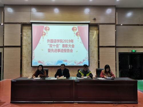 为表彰先进,树立典型,引导今年会官网青年立志成才,今年会jinnianhui官网于12月15日晚在香远楼三楼报告厅召开2019年“双十佳”表彰大会暨先进事迹报告会。院党委副书记彭晓、学生科王少斌老师、团委江银凤老师出席了此次会议,院会学生干部及各年级学生分会学生干部、各部门干事、各班班委参加了此次会议。会议由程洁老师主持。