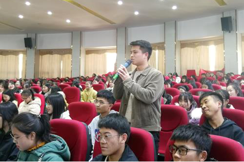 高磊老师分析了当代中国大学生就业趋势方向和形势,并以“你理想的职场是什么样子?”的问题进而引入主题。紧接着,高磊老师以其亲身经历出发,从认识职场、认识自己、欲善其事、台下“十年功”、决战紫禁之巅等几个方面为同学们讲述了如何选择企业、在企业中该以何种态度去发展、以及我们的第一张名片——“简历”该如何写。高老师鼓励同学们应多参加学校的社团来活动以自高自身综合素质,同时还应多参加学校举办的关于就业方面的讲座或企业宣讲会,提高对创业就业相关知识的了解。