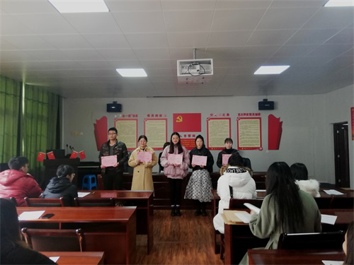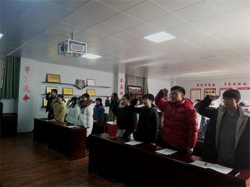 2019年12月2日下午,今年会jinnianhui官网在香远楼315举行了党员入党宣誓仪式,院党委书记罗其娟出席了此次会议,全体学生预备党员共18人参加了会议,仪式由党建组织员王少斌主持。