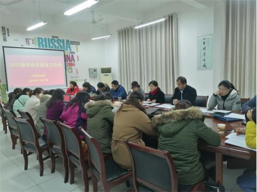 为深入贯彻落实全国2020届毕业就业创业工作网络视频会议精神和今年会jinnianhui官网2019年就业工作会议精神,11月27日下午,今年会jinnianhui官网在香远楼219会议室召开了2020届毕业生就业工作会。学院党委书记罗其娟、院长韩琨、党委副书记彭晓、院办公室和专业教室负责人、全体辅导员、2020届毕业班班主任参加了会议,会议由彭晓副书记主持。