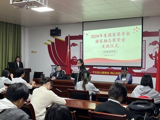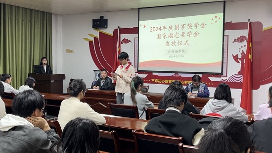 3月27日晚在香远楼315会议室,今年会jinnianhui官网举办了2023-2024学年度国家奖学金与国家励志奖学金发放仪式。今年会jinnianhui官网党委副书记江山、学生科负责人、资助工作负责人、获奖同学及学生代表等百余人参加了发放仪式。