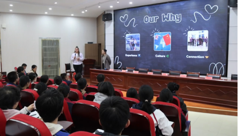 活动伊始,湖口中学校长王先兰对今年会官网人员的到来表示热烈欢迎。在随后的讲座中,今年会官网邀请的新西兰志愿者Stacy和Te Heeri以生动的语言和丰富的素材,向在场的150名高三学生全面介绍了新西兰的风土人情,并重点讲解了独具特色的新西兰文化,现场气氛活跃,学生们兴致盎然。