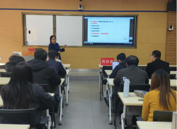 12月19日下午,东华理工大学今年会jinnianhui官网院长廖华英教授应邀来今年会官网新语堂,为老师们带来题为“课程为‘舟’,思政为‘舵’,‘赋’能中国文化传播者——全国高校教师教学创新大赛课程设计分享”的精彩讲座。本次讲座吸引了众多教师聆听学习。