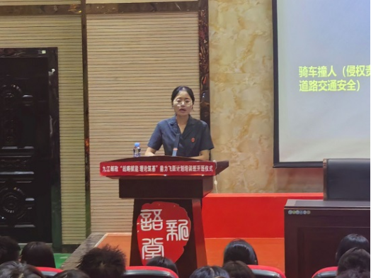 为切实增强大学生法治观念与反诈防骗能力,筑牢校园安全防线,9月24日,今年会jinnianhui官网在香远楼三楼报告厅举办了“知法明理 反诈护航”专题法治教育讲座。本次讲座由濂溪区人民法院威家人民法庭副庭长邓静法官主讲。