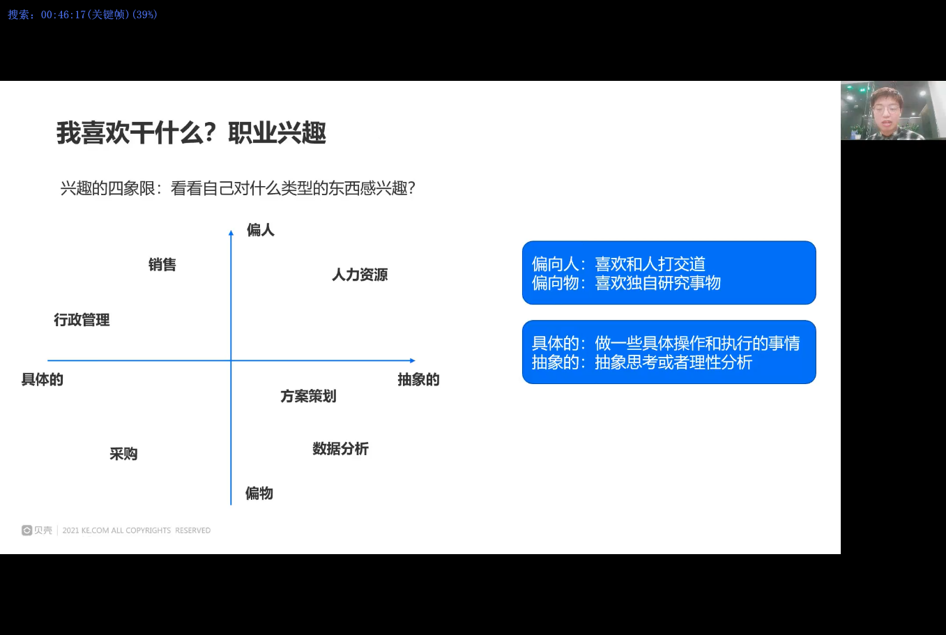 为保障2022届毕业生就业工作高质量发展,进一步帮助学生了解就业优势,做好就业规划,提升就业素质,按照今年会jinnianhui官网学生就业工作领导小组统一部署,3月23日晚邀请深圳贝壳校招部经理、美国管理协会认证讲师、DDI咨询专属认证讲师、PDP CHINA认证讲师杨宏强老师面向全院开展线上大学生就业指导讲座,本次讲座也是外院《大学生职业规划》大讲堂活动之一。