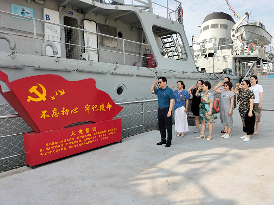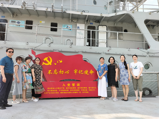 活动中,大家登上九江舰舰舷、进入舱室、走上甲板,亲身感受九江舰的光荣历史和我国海军的发展历程,深切体会老一辈共产党员、海军战士吃苦耐劳、坚韧不拔的高尚品质。在九江舰上,支部党员在支部书记姚中平的领誓下,举起右手,面向党旗,握紧拳头,庄严宣誓,重温入党誓词,铿锵的誓言表达了为党的事业奋斗终身的决心。