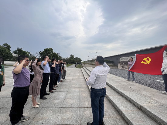 “我志愿加入中国共产党,拥护党的纲领……”在长江大堤九江段4、5号闸口处,院党委书记闫来英带领大家面向中国共产党党旗重温入党誓词,用铿锵誓言诠释对党的无限忠诚和为共产主义事业奋斗终身的坚定决心。