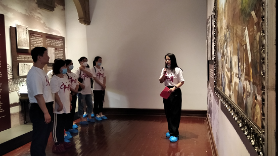 在九江租界历史陈列馆,支部书记李慧慧和委员高芳、虞毅分别以《九江租界历史》《屈辱外交中的一抹亮色》《九江军民收回英租界》为题,实景讲授近代以来九江人民反帝反封建的斗争历史,触摸着百年沧桑的历史建筑,瞻仰一件件革命文物和历史照片,听着那九十五年前这片热土上的斗争故事,实景党课架起一座穿越历史的桥梁,激活了每位党员的红色血脉,震撼着每一位党员的心灵。