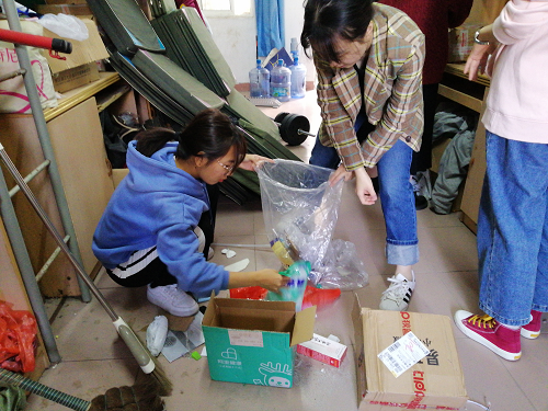 14日上午9点整,另一队发展对象在九栋门前集合,拿着准备好的清洁工具前往九栋101爱心屋进行打扫。爱心屋内物品繁多,志愿者们将一些陈旧用品筛选出来,进行种类的统计和放置,有的清理垃圾,有的搬运物品,还有的擦桌子。虽然早晨气温较低,但是大家克服困难,团结协作,把原本杂乱的爱心屋整理得井井有条,焕然一新。