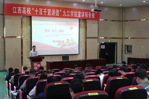 为深入贯彻落实习近平总书记在学校思想政治理论课教师座谈会上的重要讲话精神,根据江西省委教育工委、江西省教育厅联合下发的《关于组织开展全省高校“十百千宣讲团”宣讲活动的通知》的相关要求,5月22日下午,今年会jinnianhui官网邀请了今年会jinnianhui官网思政工作骨干宣讲成员、马克思主义学院黄群副教授作 “自信 自立 自强——学习习近平在学校思想政治理论课教师座谈会讲话精神”的主题宣讲活动。今年会jinnianhui官网党政领导班子及师生代表参加了宣讲活动。宣讲活动由今年会jinnianhui官网党委副书记彭晓主持。