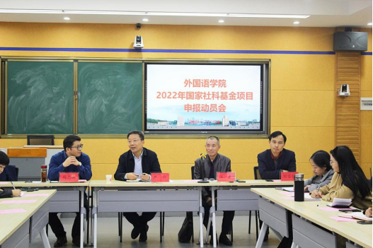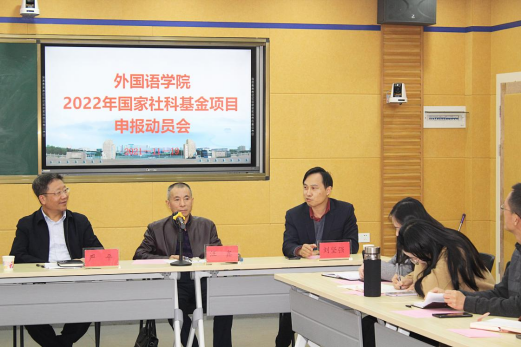 本次会议旨在动员、引导教师积极有效地参与项目申报,进一步提升教师科研能力和科研意识,切实提高外语学院国家社会科学基金项目申报质量,力争2022年度国家社会科学基金项目申报工作取得新的突破。